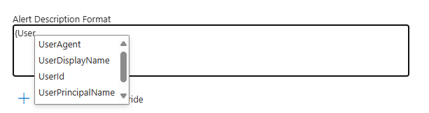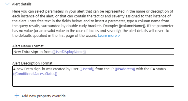 Here you can see, that Sentinel allows you to enter a customized title and description for the alert.
