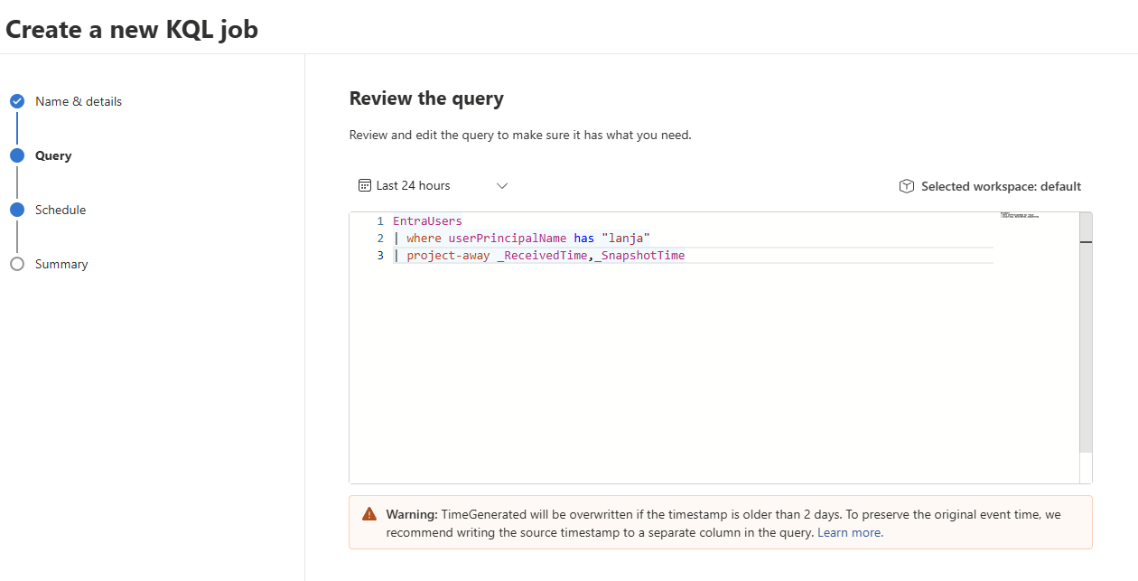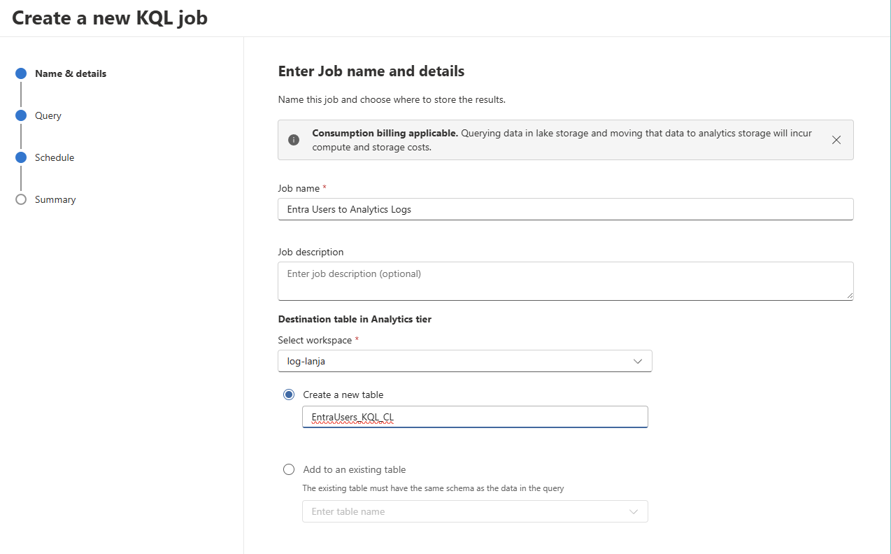 Anyway, it's essentially what Summary Rules used to be: You create a KQL query and all matching results are copied to a selected target table. This table can be in the Analytics Logs tier, so you effectively "promote" your logs.