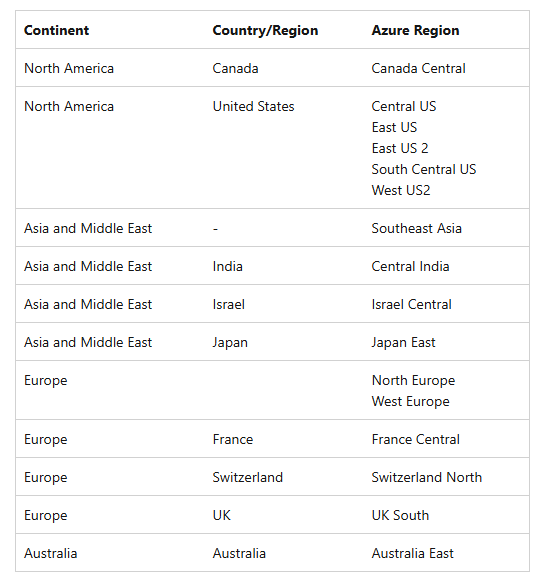 According to Microsoft, only some regions are supported: